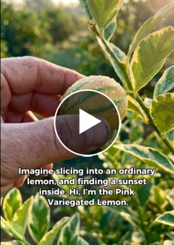 Imagine slicing a lemon and revealing a soft pink interior — aromatic, bright, and elegant — while the tree itself glows with variegated white-green leaves.